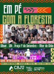 Um coro pela Amazônia viva em praça pública por meio de vozes de 30 crianças de sete a 10 anos do “Coral CAJU Irurama”, de 30 integrantes do coral de adultos e jovens “Cantemos Juntos” e dos quatro músicos do grupo de carimbó “Os Amazônidas”. Essa é a proposta do evento “Em pé com a Floresta”, que vai acontecer na praça 7 de Setembro, em Alter do Chão, dia 08/09, a partir das 18h.